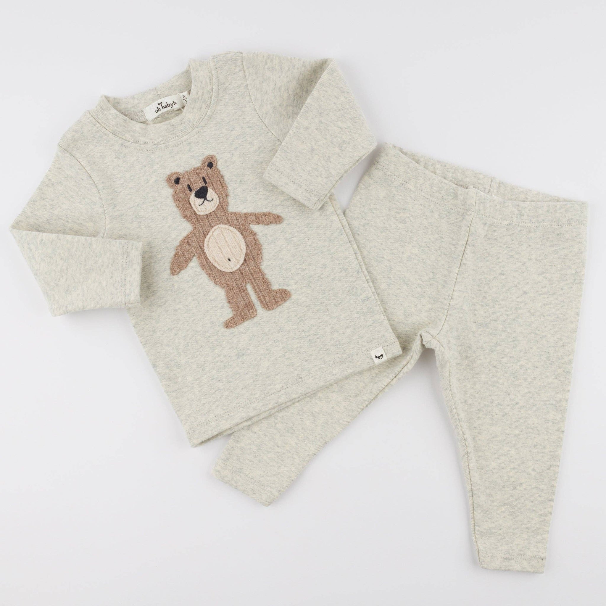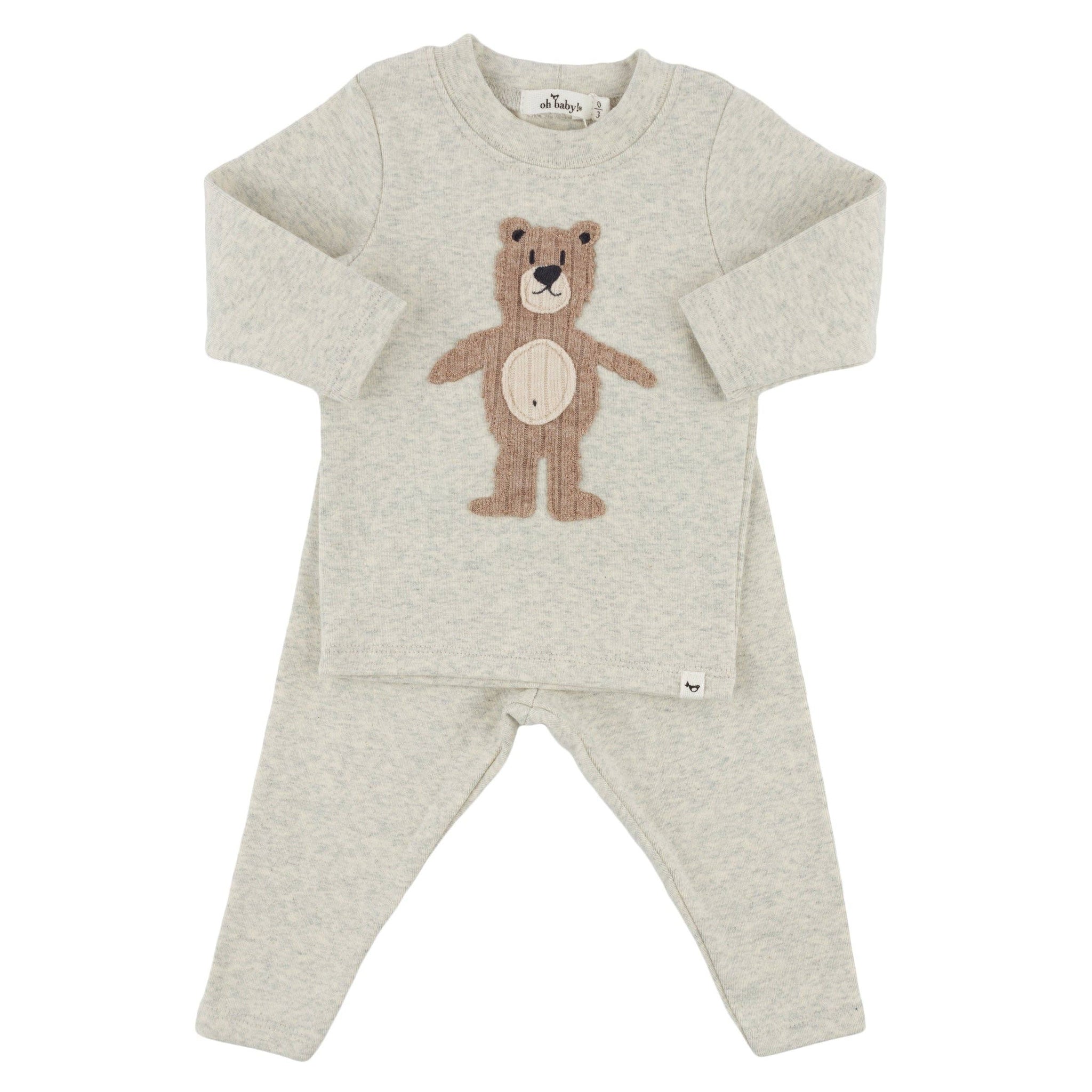 Your little one will look so cute in this adorable applique teddy bear on a soft cotton long sleeve tee, with matching pants.