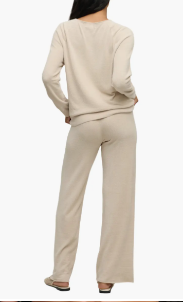 Barefoot Dreams CozyChic Lite Jersey Roll Pullover and Wide Leg Pant Set, Stone
