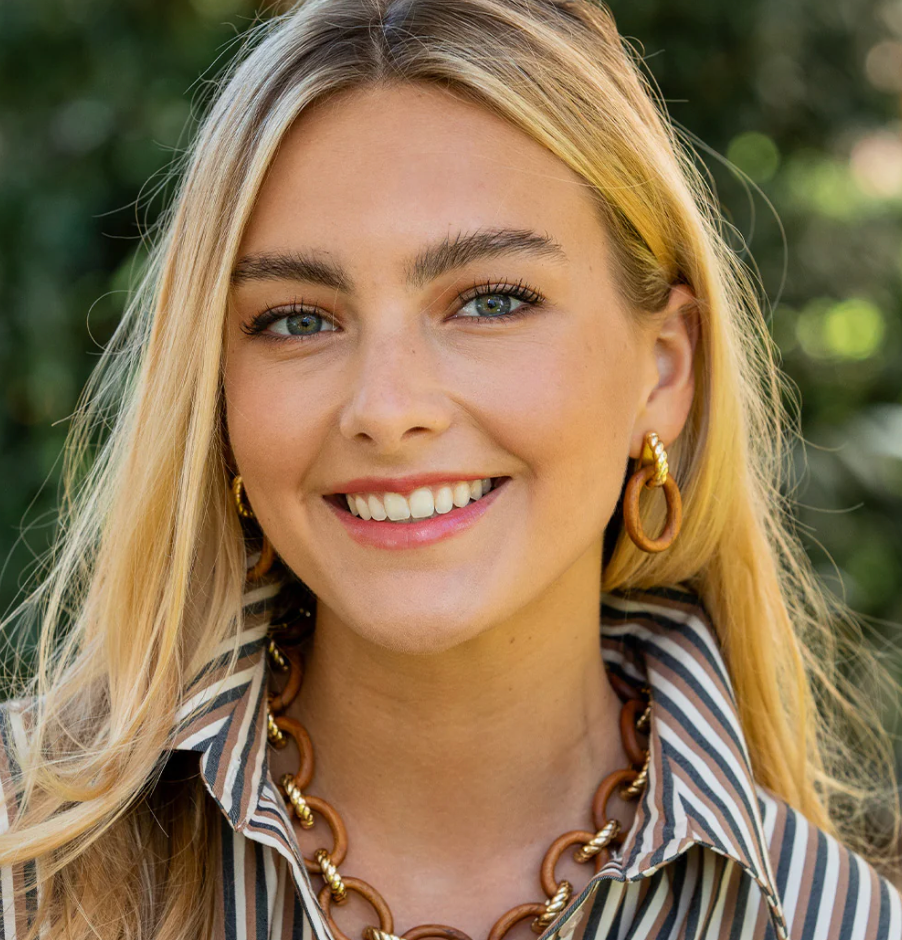 Channel your earth goddess vibes every day with this unique pair of hand-carved link earrings of polished teak wood, suspended from ropes of gleaming gold.