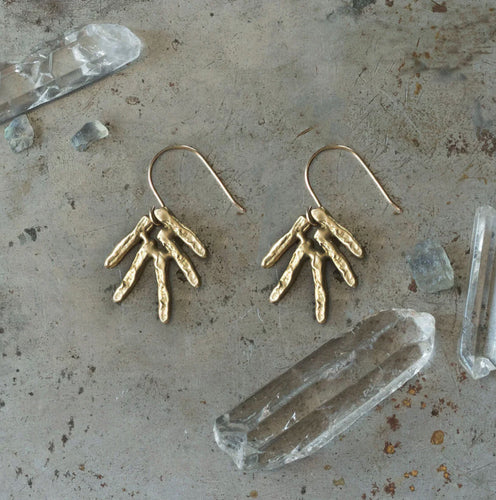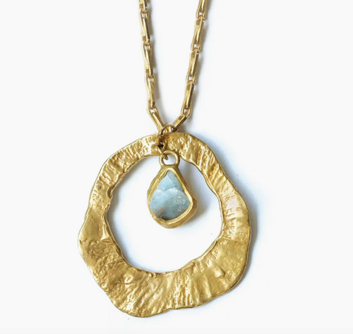 Emilie grew up on the edge of the Atlantic Ocean, and water has always been her constant and her inspiration. She uses the age-old craft of lost wax casting which dates back to ancient Egypt, wherein she carves sculptural pieces into hard wax and casts them into metal. Rough gemstones are incorporated into her work as a celebration of the beauty of natural imperfection.