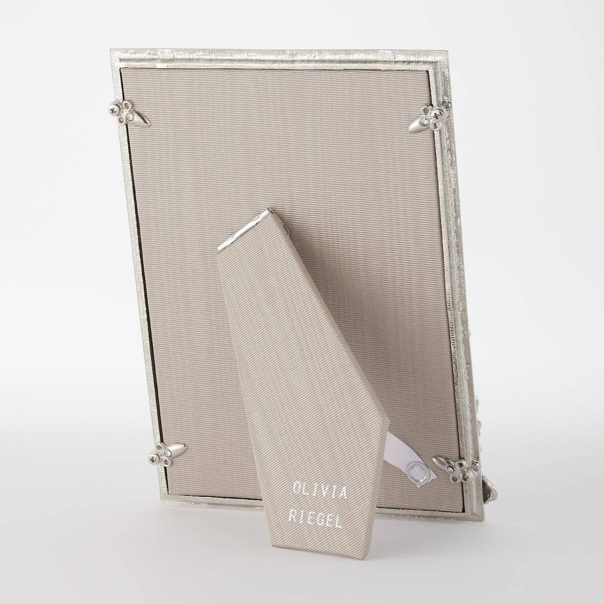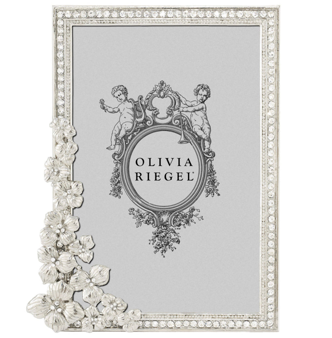 Encrusted with hand-set clear European crystals, our Olivia Riegel Evelyn Floral Frame is equally-stunning in Gold or Silver.