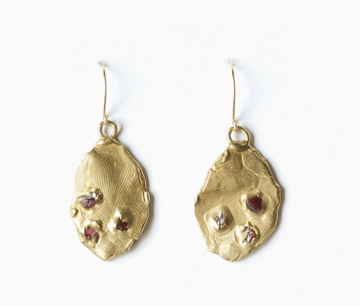 Emilie grew up at the edge of the Atlantic Ocean, and the sea has always been her inspiration. She uses the craft of lost wax casting which dates to ancient Egypt, wherein she carves sculptural pieces into hard wax and casts them into metal. Rough gemstones are incorporated into her work as a celebration of the beauty of natural imperfection.