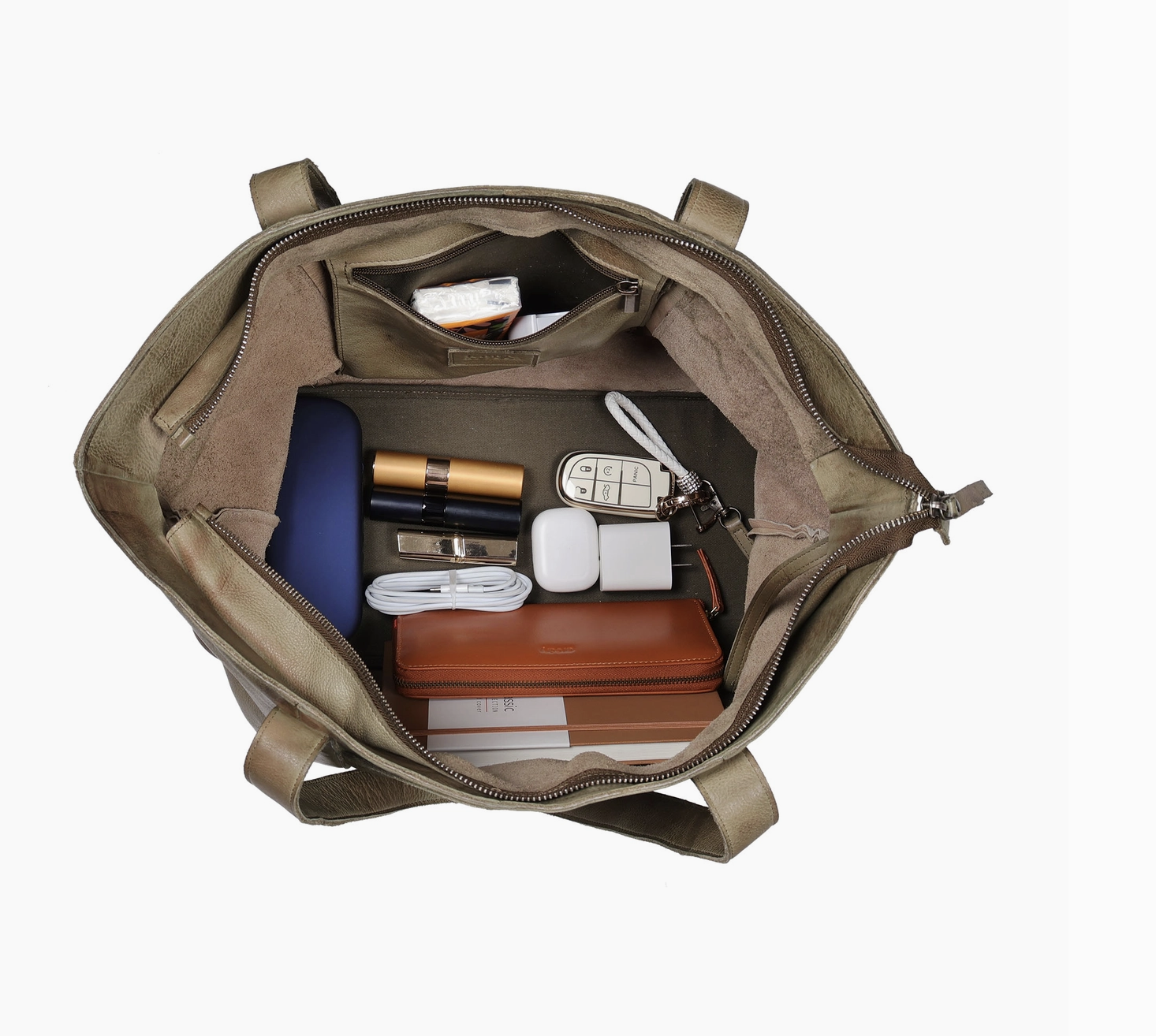 The streamlined Carmen Tote combines spaciousness with a sleek silhouette, offering plenty of room for your daily essentials.