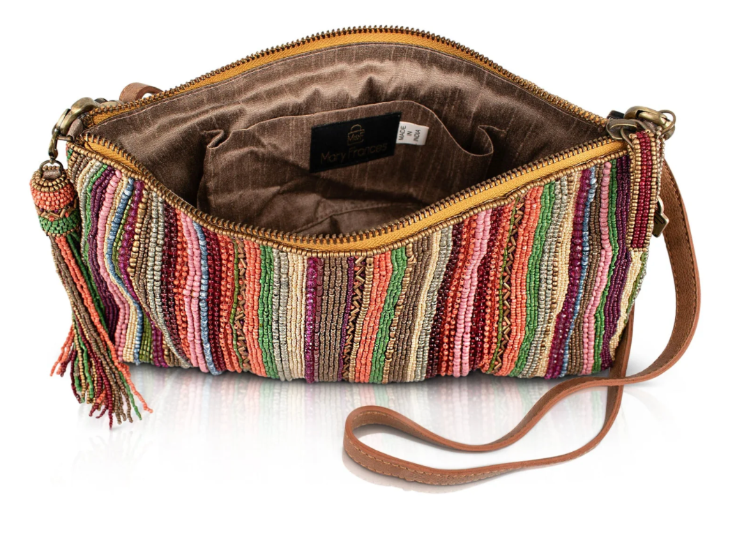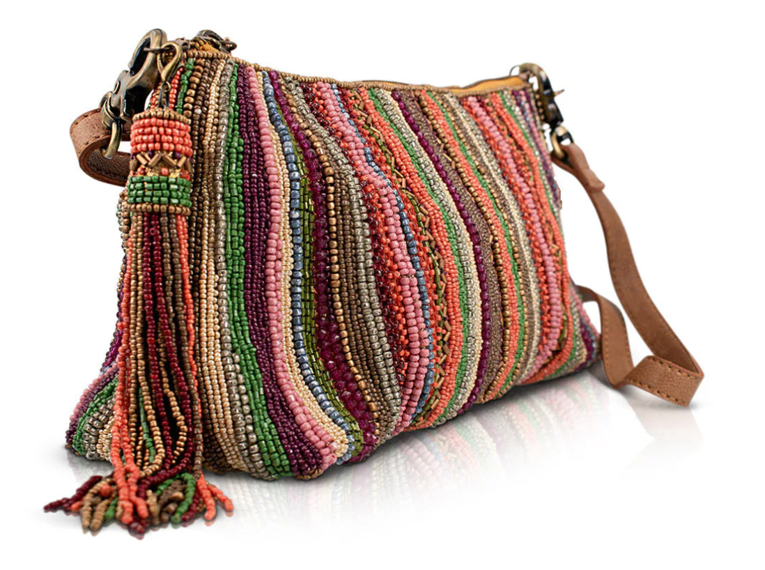This exquisite hand beaded bag brings every outfit to life. Perfectly sized for all your essentials, it can be worn as an everyday crossbody, or remove the strap for a clutch for evenings out.