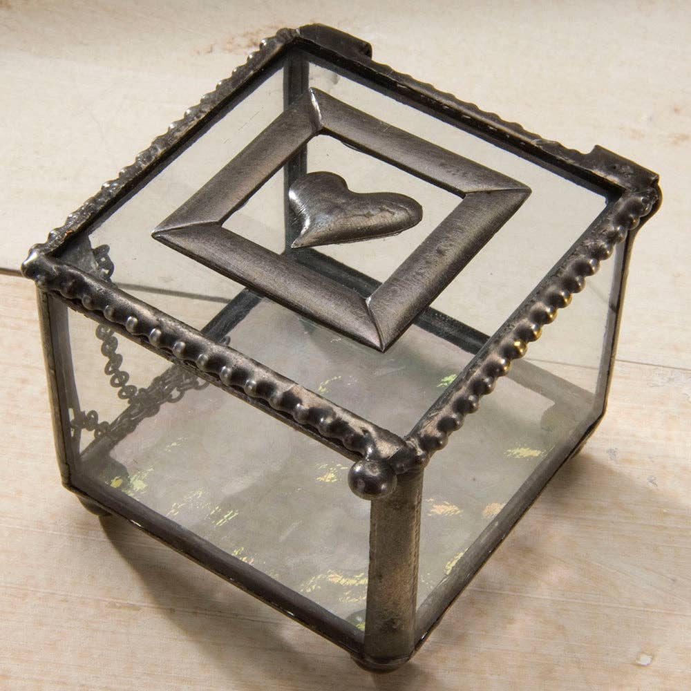 Perfectly sized to use as a ring or jewelry box, this small glass box is the ideal Valentine gift, or a keepsake for your vanity.