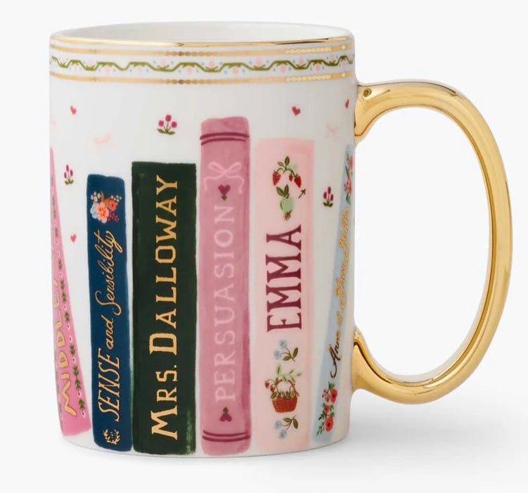 Illustrated with classics like Pride and Prejudice, Little Women, and Anne of Green Gables, and with a gilded gold rim and handle, the Ladies Night Book Club mug from Rifle Paper makes a charming addition to your reading nook.