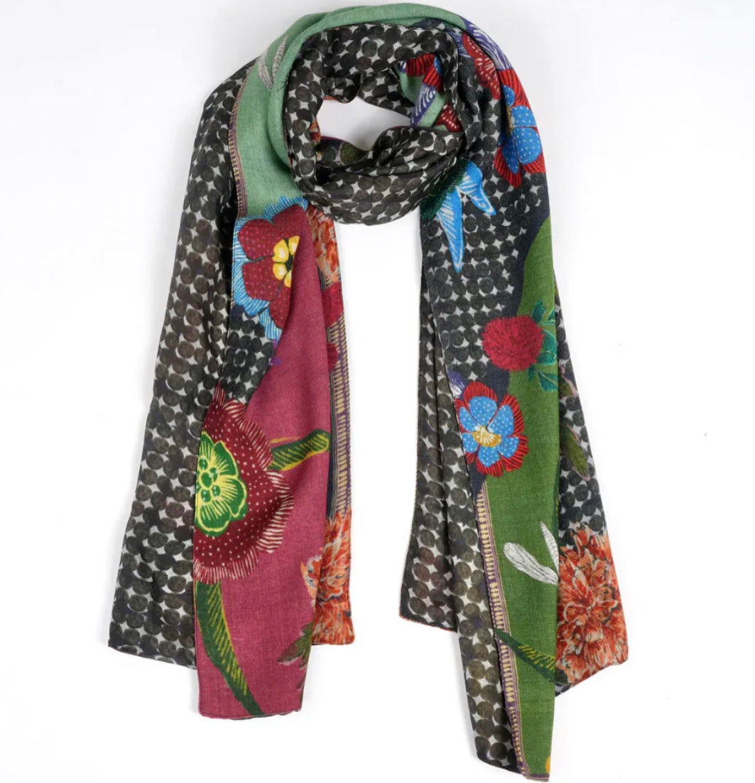 The unique blend of soft wool and smooth silk in our Garden Patchwork Scarf offers soft comfort and luxe style, making it an ideal accessory for elevated everyday wear.