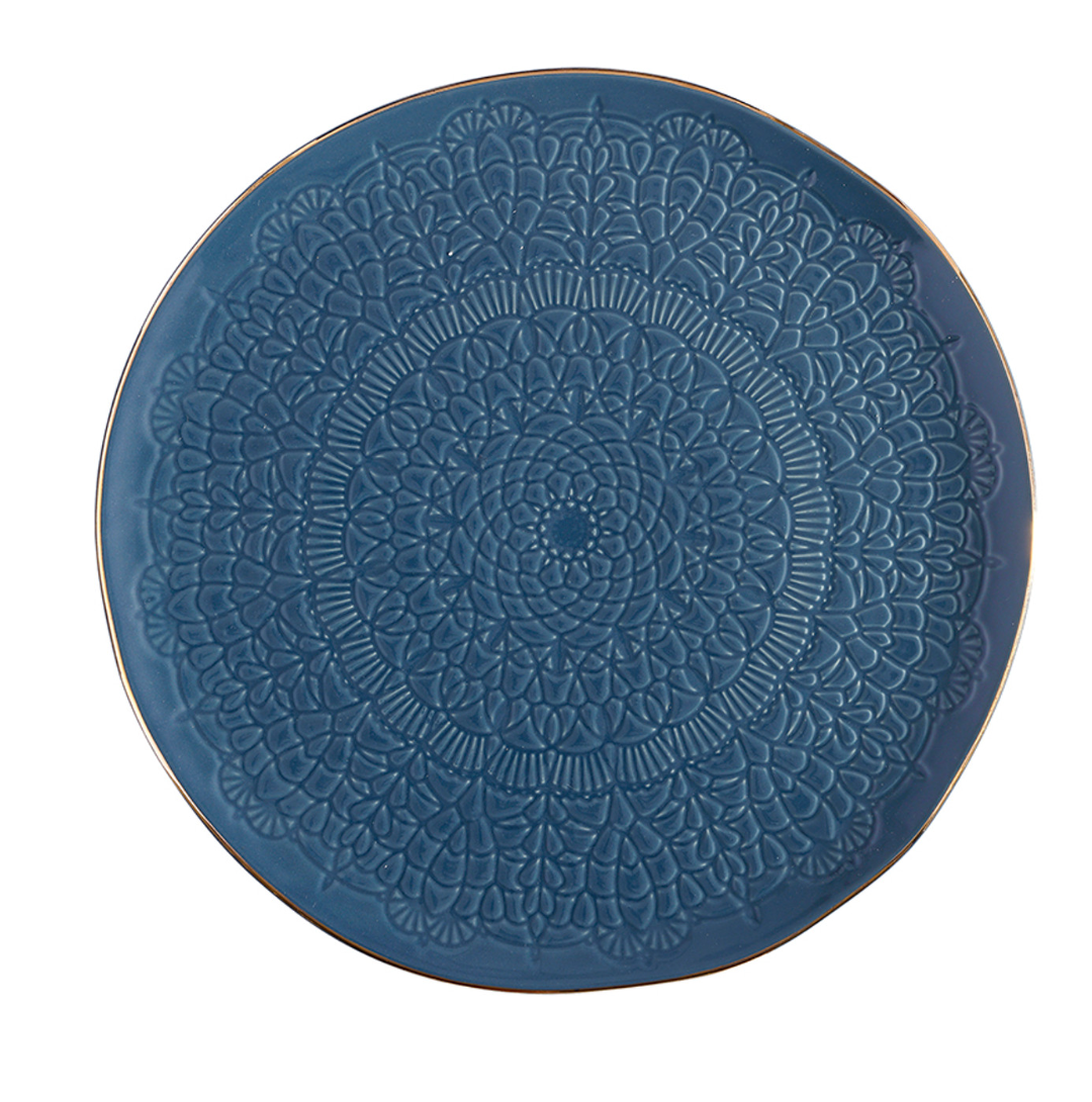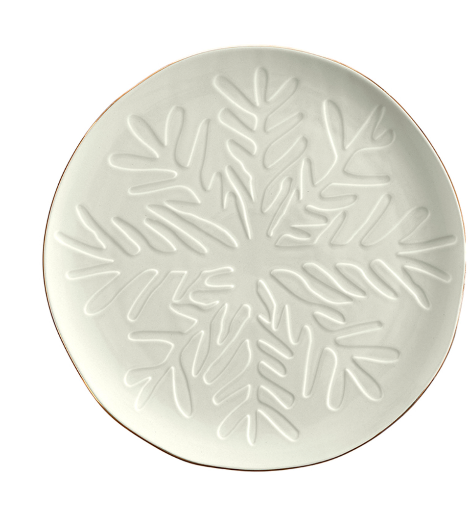 Add timeless charm to your table with our Gold-Rimmed Stamped Ceramic Platter.
