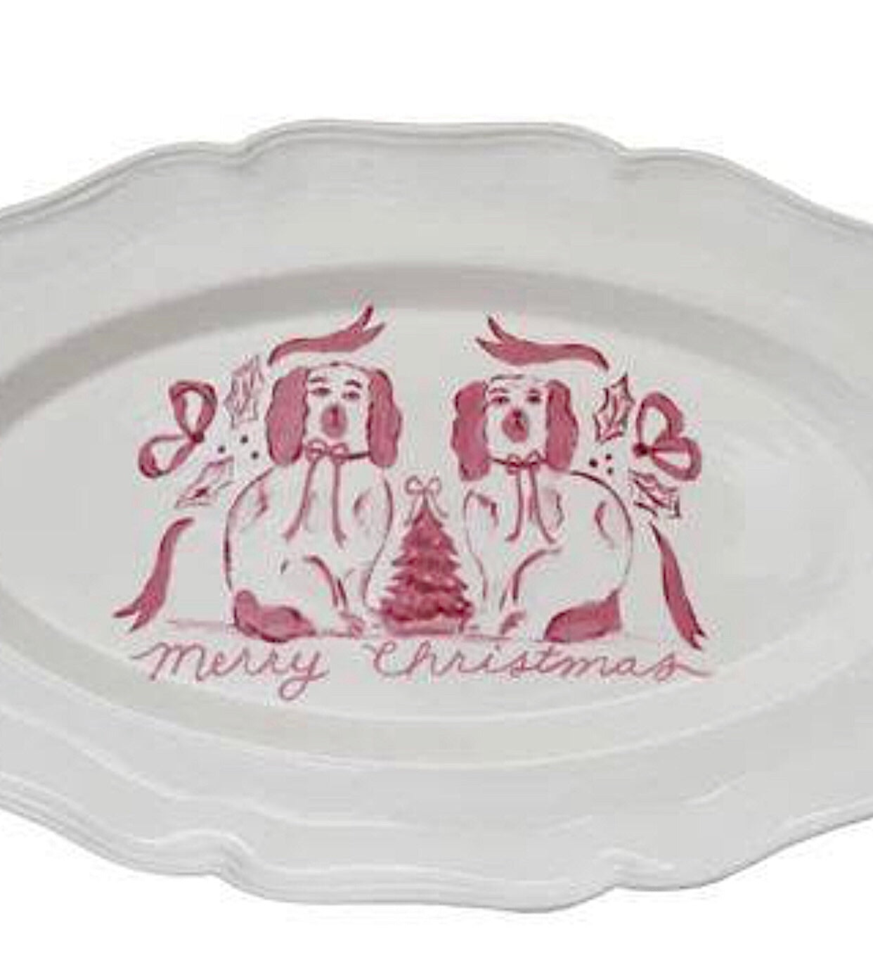 Features a scalloped edge and traditional Staffordshire Dogs design, giving this platter a very vintage look that we love.
