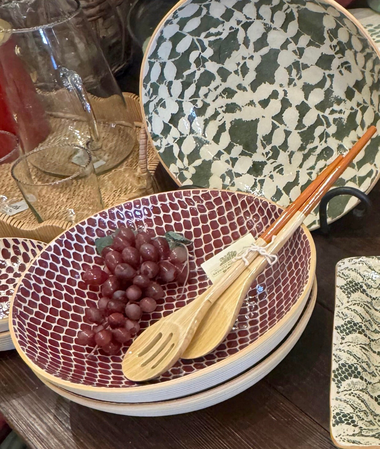 We strive to find unique, beautiful things that are not mass-produced ... like this versatile pottery bowl, perfect for salads and side dishes. Each piece is made by hand using intricate lace-like or geometric patterns, and vibrant glazes.