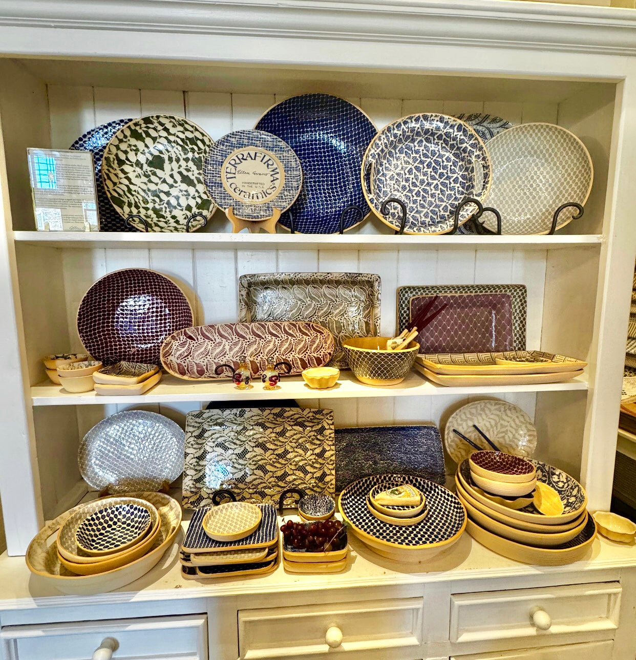 Artist Ellen Evans creates patterns by painting through textiles and lace using liquid porcelain to produce a distinctive, one of a kind result. With vibrant glazes and beautiful designs, each and every handmade piece is truly a work of art.