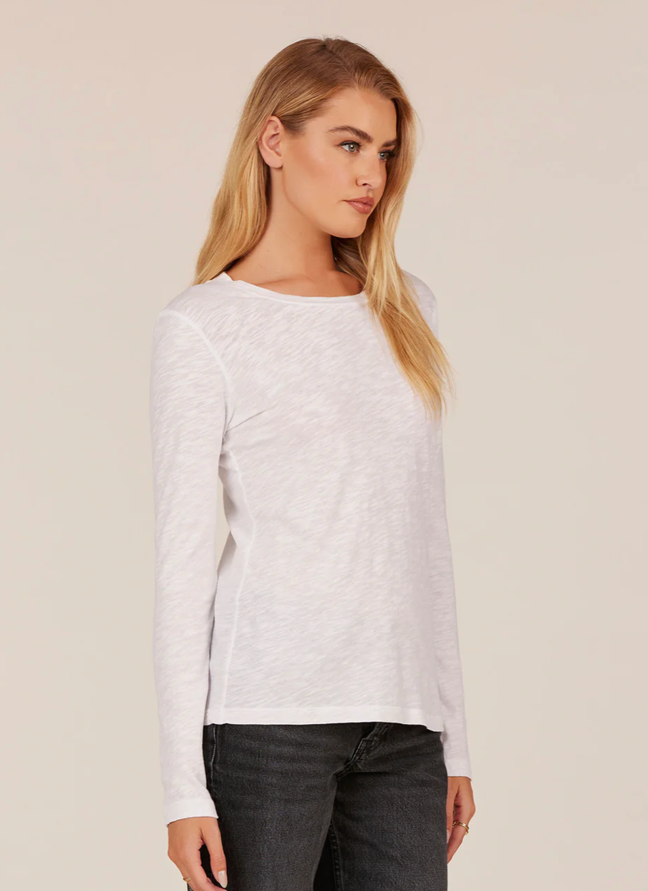 We perfected the long sleeve basic with our crewneck tee style. Its super soft feel, flattering fit, and ultra-luxe slubbed jersey fabric will make this your new go-to style.
